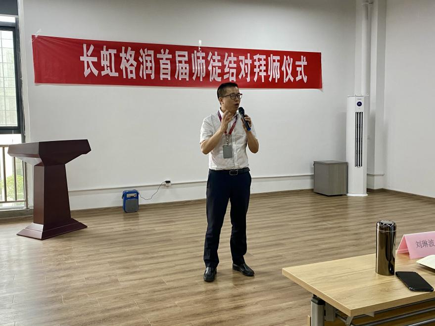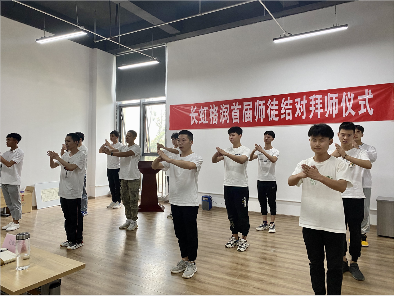 儀式上,師父代表與學員代表相繼發言、互表決心。學員代表何嬌代表發言感謝公司為提供人生成長的大舞臺。決心在師父的引領下,虛心求教,積極進取,發揮自己的聰明才智,提高自身能力,迅速成長,勇擔重任。為感謝長虹格潤公司給予的平臺及培養機會,學員們精心準備了“軍體操”、“合唱表演”并集體朗誦“班訓”,信心百倍、精氣神十足!