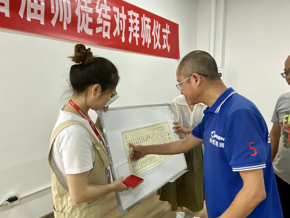師傅與學員們依次按下手印,簽下“拜師貼”,自此,公司首批師徒傳幫帶成功結對、首個訂單培養班正式起航。相信學員們通過公司搭建的平臺、師傅的悉心教誨加上自身的努力拼搏,一定會成為公司未來發展的棟梁之才!