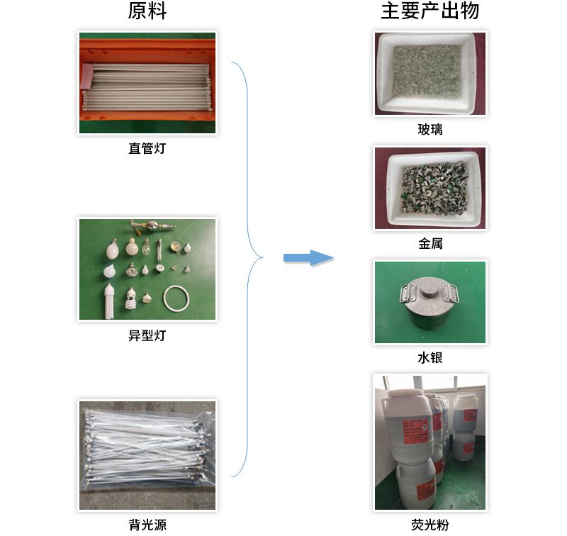 The company achieves the advantages of low-consumption operation, high efficiency and low pollution through the integration of equipment and processes. The whole set of equipment adopts fully sealed negative pressure crushing and distillation equipment to achieve the harmless treatment of waste mercury-containing fluorescent tubes and other mercury-containing electric light sources (3000 tons / year for external operations)